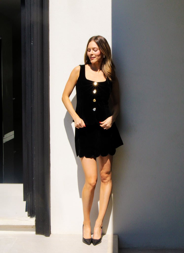 Blusa con botones dorados en terciopelo