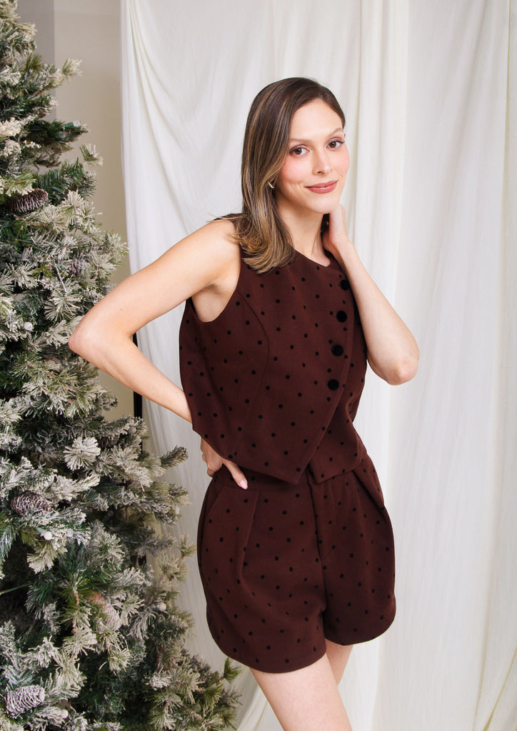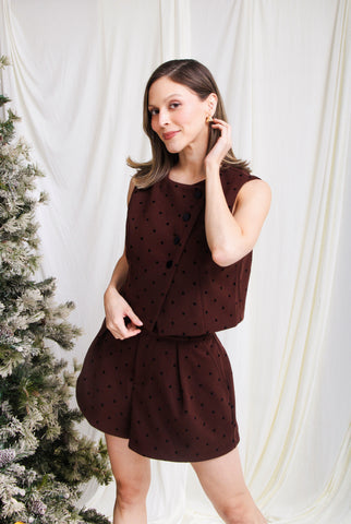 Set chaleco y short en una tela divina con detalles de terciopelo