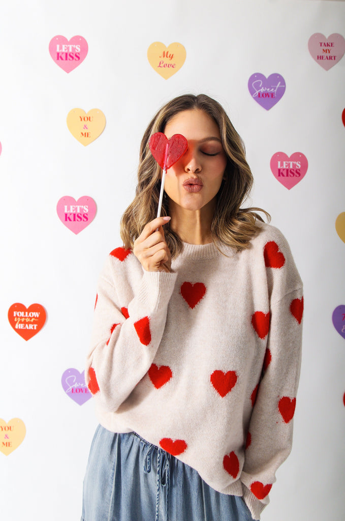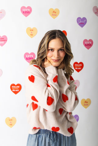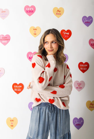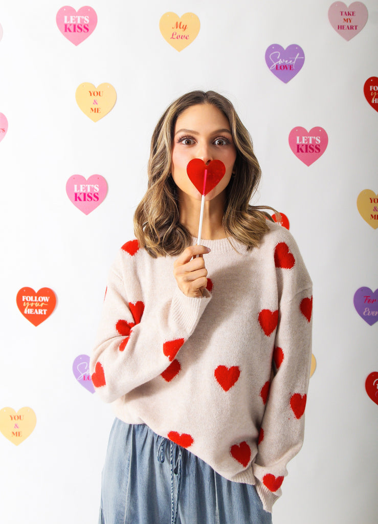 Suéter Moka con estampado de corazones rojos en una tela deliciosa